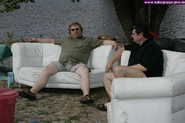 Das (noch) weiße Ledersofa ist noch nicht richtig vom Hänger abgeladen...