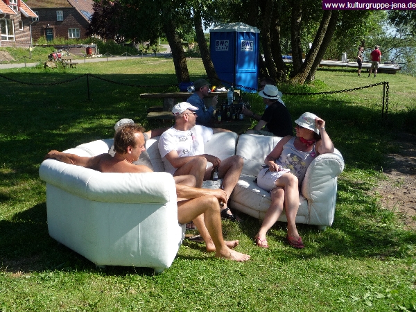 Die berühmte weiße Couch leistet auch an Land gute Dienste!