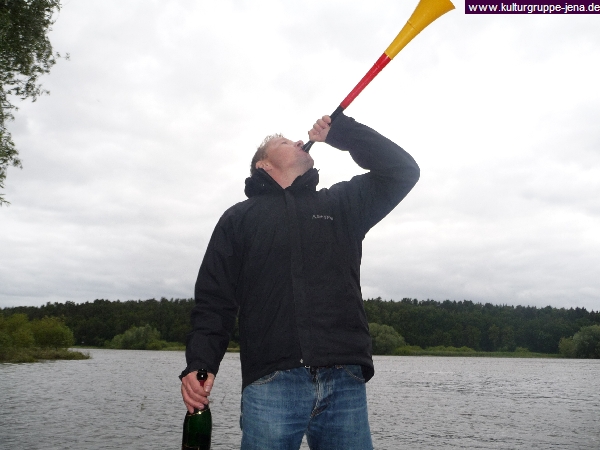 Der gemeine niederelbische Trötenbieber in voller Aktion.